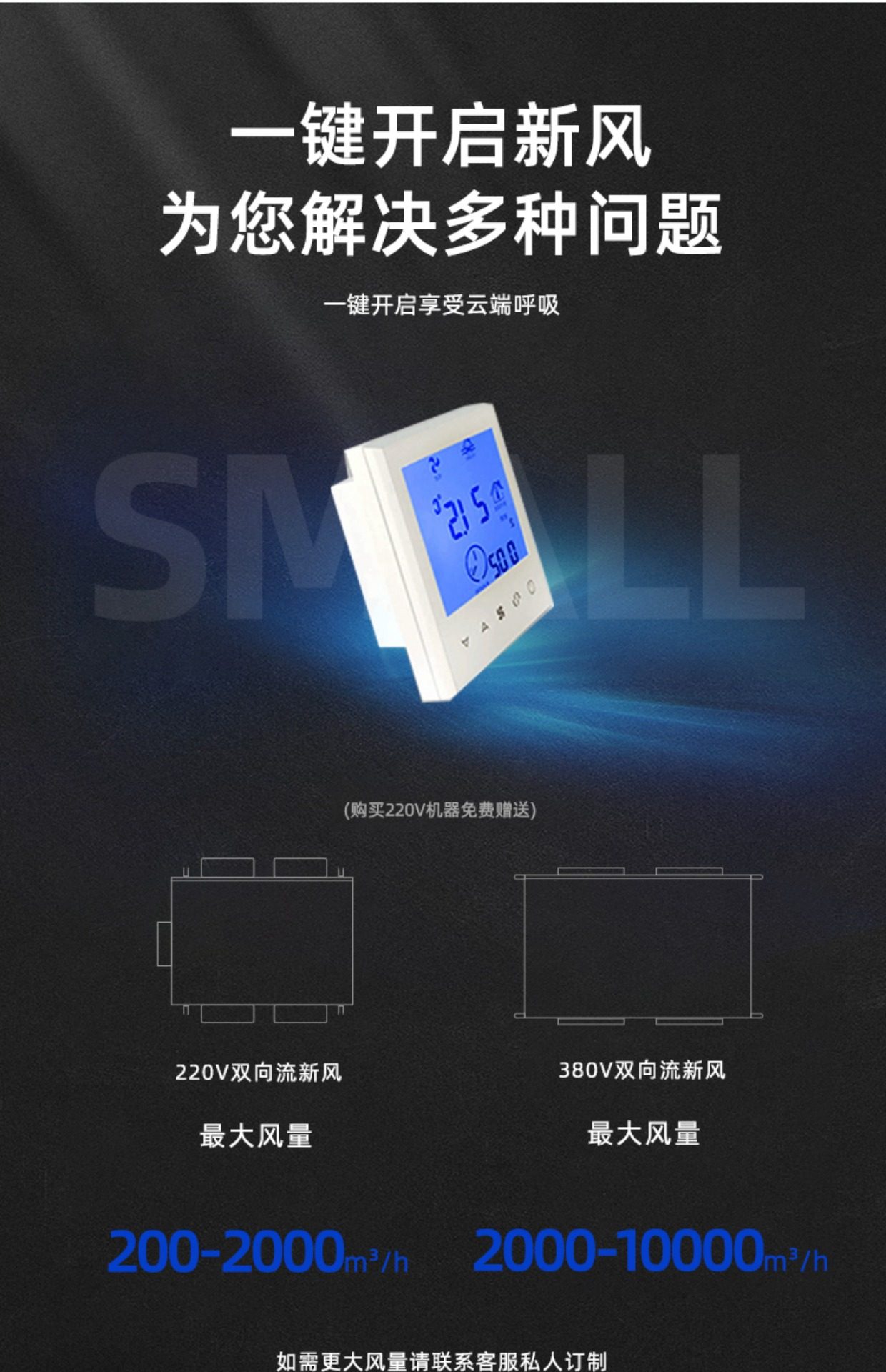 新风系统家用全屋通风换气双向流新风机商用排风网吧餐厅地下室