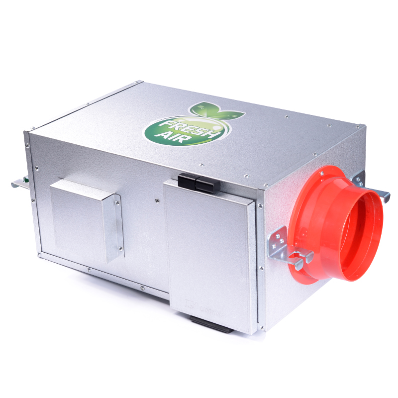 中央新风系统中单向流:负压型新风系统是功能较低的,是房地产开发商配套新风系统常见的类型。其排风设备的功能就是从各个房间抽出污染空气,并排出室外,从而在室内形成负压。为了能够向室内引入新鲜空气, 房地产开发商在窗户上面会增加进风阀,空气通过进风阀进入室内时只经过初步过滤,因此这种新风系统组合只能阻挡的灰尘颗粒物。正压型中央新风系统一般只是一个带电机的金属通风设备,有时候内置带有各种滤网。大部分情况下,低端正压型中央新风系统用于公共场所,比如健身房、超市等等,另外,此类通风设备经常与中央空调用在一起。